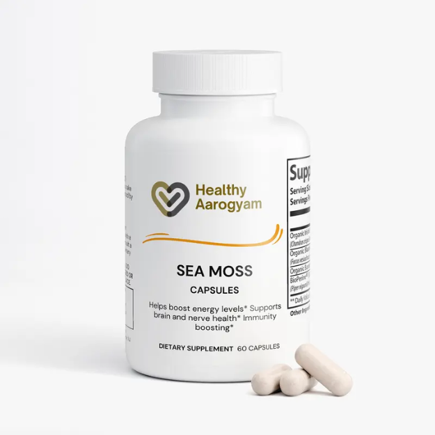 Healthy Aarogyam Sea Moss 60 Capsules - Immune Boosting Supplement with Organic Irish Moss Bladderwrack & Burdock Root for Skin Healing Digestive Support - Healthcare Fitness Dietary Edible quantity